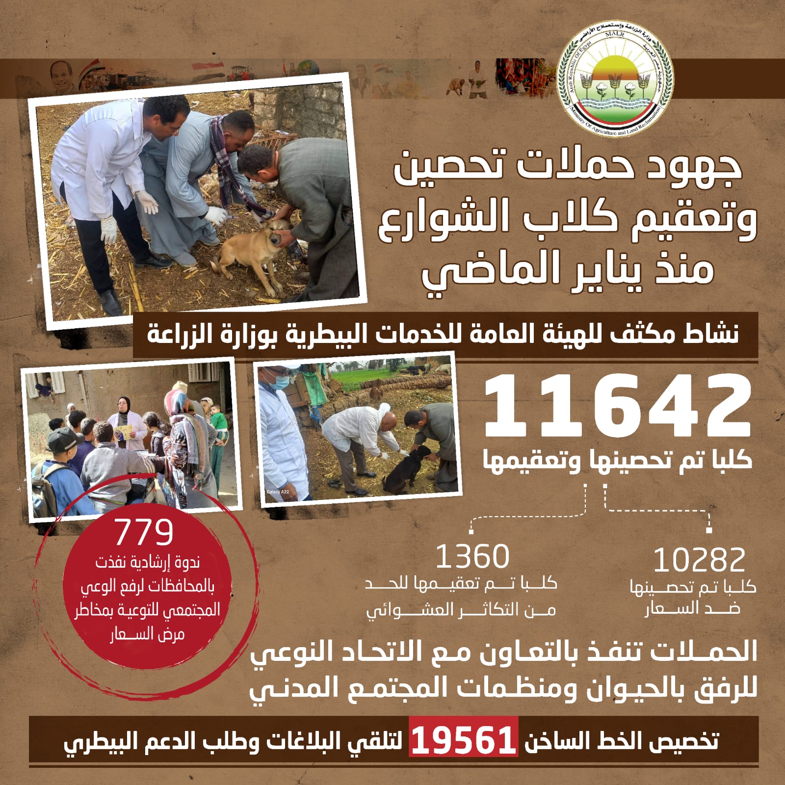 "الزراعة" تعلن تحصين وتعقيم أكثر من 11 ألف كلب حر منذ يناير وتنفيذ 779 ندوة إرشادية لرفع الوعي المجتمعي