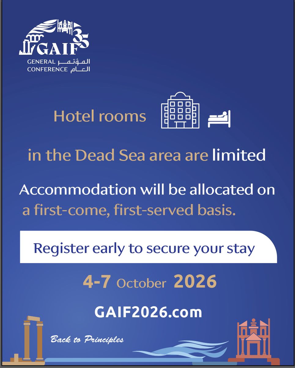 دعوة للتسجيل المبكر في المؤتمر العام الخامس والثلاثين للاتحاد العام العربي للتأمين بالبحر الميت