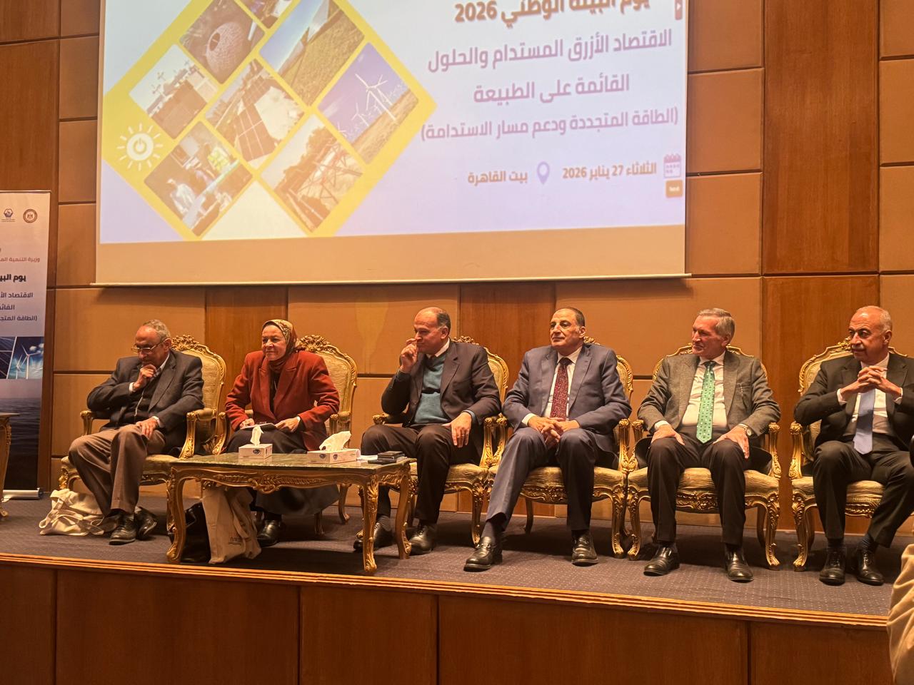 تحت رعاية الدكتورة منال عوض وزيرة التنمية المحلية والقائم بأعمال وزير البيئة ، نظمت وزارة البيئة بالتعاون مع المكتب العربي للشباب والبيئة احتفالية كبري للاحتفال بيوم البيئة الوطني ٢٠٢٦ ،تحت شعار : الاقتصاد الأزرق المستدام والحلول القائمة على الطبيعة (الطاقة المتجددة ودعم مسار الاستدامة) ، بالمركز الثقافى البيئي التعليمى " بيت القاهرة "، بحضور المهندس شريف عبد الرحيم مساعد الوزيرة للسياسات المناخية نيابة عن الدكتورة منال عوض ، والدكتور عماد عدلى رئيس جمعية المكتب العربي للشباب والبيئة، والدكتور أيمن فريد أبو حديد وزير الزراعة الأسبق ومؤسس وعضو مجلس أمناء المنتدى المصري للتنمية المستدامة ، وعدد من ممثلي الوزرات والهيئات والجمعيات الأهلية ولفيف من خبراء العمل البيئي وكوكبة من الإعلامين في مصر.