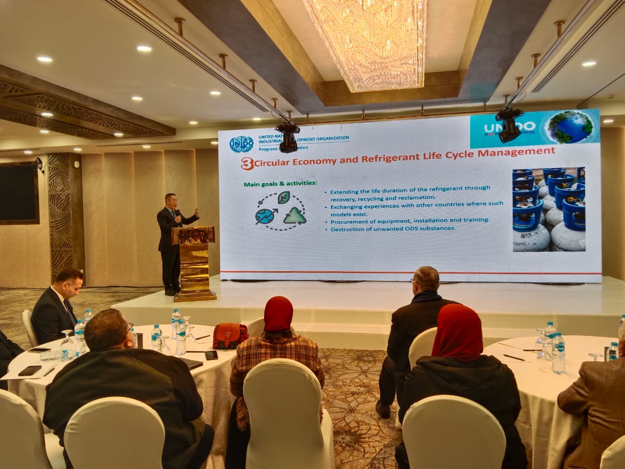 نظمت وزاراة البيئة من خلال وحدة الاوزون ورشة عمل حول مشروعات بروتوكول مونتريال التي يتم تنفيذها بالتعاون مع منظمة الأمم المتحدة للتنمية الصناعية، وذلك لتسليط الضوء على أهم المشروعات المستقبلية خلال المدة من 2026- 2030،  بحضور السيد باتريك جيلابار الممثل المقيم لمنظمة اليونيدو فى القاهرة، السيد ألويس مهلانغا مدير قسم ابتكار المناخ وبروتوكول مونتريال ،السيد يونروي تشو مسؤول التنمية الصناعية في اليونيدو، والأستاذة سها طاهر رئيس الادارة المركزية للتعاون والعلاقات الدولية والدكتور عزت لويس رئيس الوحدة الوطنية للأوزون، السيد أمير نخلة المنسق الوطنى للمرحلة الثانية من برنامج إدارة الأداء البيئي  KIP-EE) ، و لفيف من رؤساء وممثلى الهيئات الحكومية والشركات الوطنية و الخبراء وممثلي منظمات المجتمع المدني.