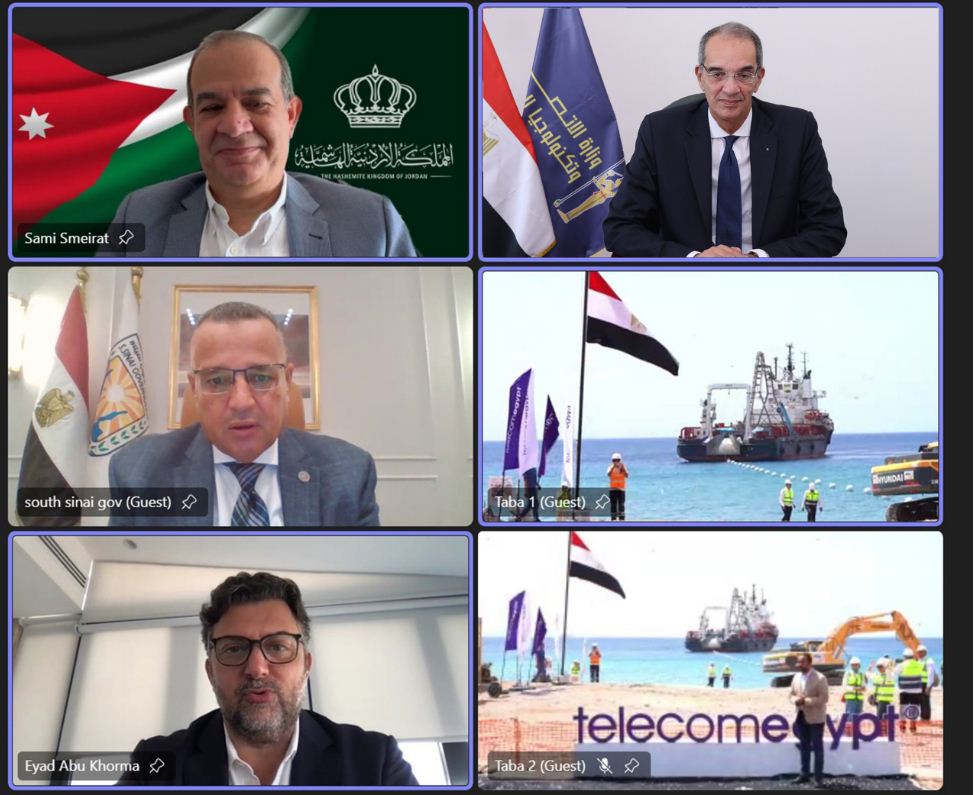 عبر تقنية الفيديوكونفرنس وزير الاتصالات ووزير الاقتصاد الرقمى والريادة الأردنى يشهدان عملية إنزال الكابل البحرى عالى السعة "كورال بريدج" فى مدينة طابا بجمهورية مصر العربية