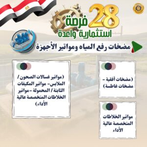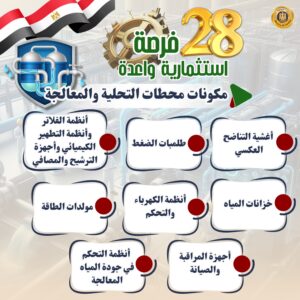 5- مكونات محطات التحلية والمعالجة (أغشية التناضح العكسي - طلمبات الضغط- أنظمة الفلاتر- خزانات المياه- أنظمة الكهرباء والتحكم- أنظمة التطهير الكيميائي- مولدات الطاقة- أجهزة المراقبة والصيانة- أنظمة التحكم في جودة المياه المعالجة- أجهزة الترشيح- المصافي).