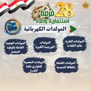 15- المولدات الكهربائية (المولدات الغازية عالية الكفاءة- المولدات التوربينية الكبيرة- المولدات المحمولة للطوارئ عالية القدرة- المولدات الهجينة العاملة بالوقود المتعدد- المولدات العاملة بالطاقة الشمسية)