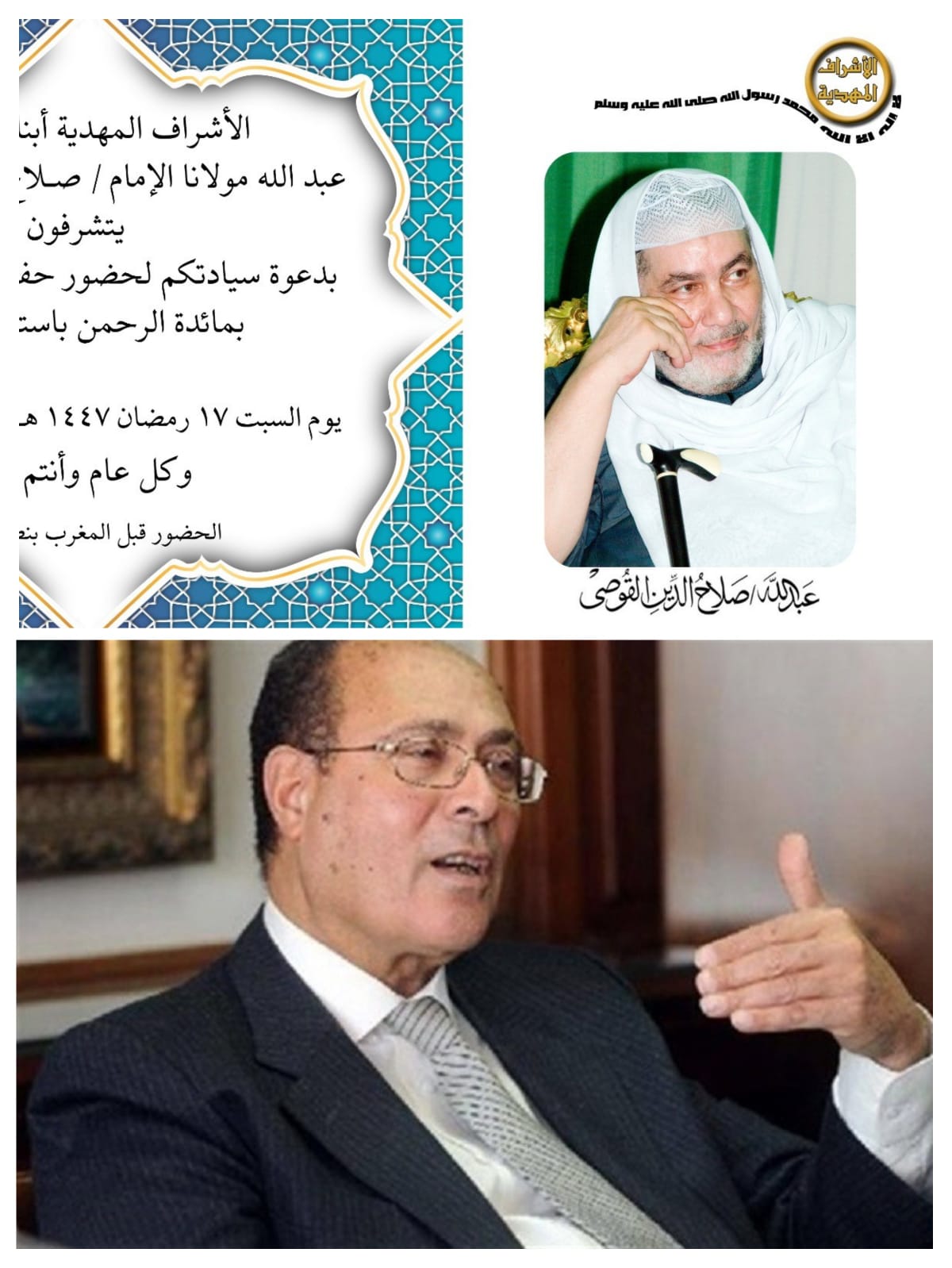 الاربعاء المقبل 21 رمضان 1447 ـ 11 مارس 2026 " الاشراف المهدية " تتشرف بإقامة حفل شيخ مشايخ الطرق الصوفية ونقيب الاشراف